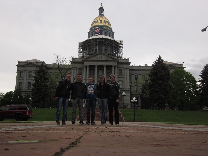 Današnji dan je bil vremensko zelo raznolik. Zjutraj smo se odpravili na najvišjo lokalno goro, Mt. Evans, na katero je možno priti z avtom in ki slovi po najvišje ležeči asfaltirani cesti v Severni Ameriki. Z avtom smo se odpeljali na 3200m nadmorske višine in se malo igrali v snegu. Na našo žalost smo ugotovili, da je cesta na vrh gore zaprta in tega nobeno moledovanje ni bilo zmožno spremeniti. Vendar nas to ni ustavilo in smo se nekaj sto metrov višje povzpeli še sami, nato pa smo se zaradi bližajoče nevihte obrnili in se odpravili nazaj. Sončno vreme se je spremenilo v snežni metež, ki se je, ko smo se dovolj spustili, spremenil v naliv. Obiskali smo se bižnji grob Buffalo Billa in se za kosilo okrepčali z bizonjim mesom. Pogledali smo si še bližnji amfiteater, kjer smo ujeli še zadnje minute proslave ob zaključku neke srednje šole. Popoldne smo se odpravili se v mestno jedro, kamor smo se trudoma prebili zaradi popoldnaske gneče. Ogledali smo si glavne stavbe v mestu in osrednjo ulico ter nekaj stadionov in se po mnogo prehojenih kilometrih v večernih urah vrnili domov.