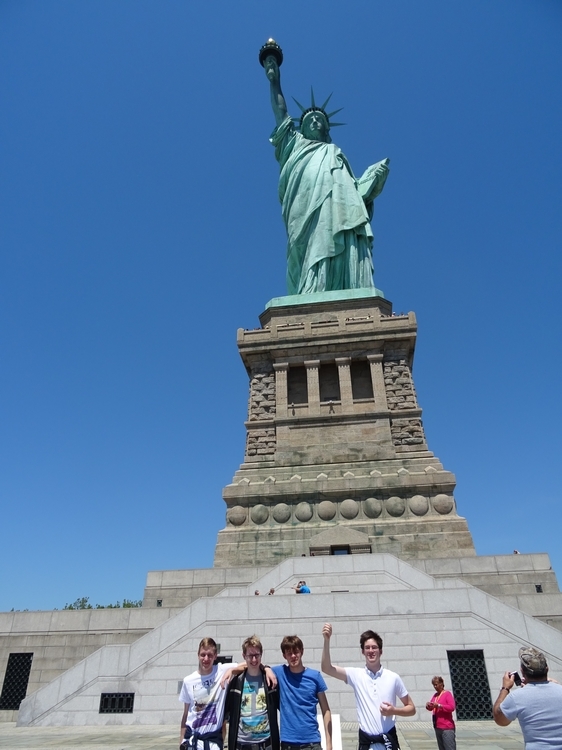 Po dobrem zajtrku v hotelu smo ponovili pot do postaje podzemne železnice in nato na skrajni južni del Manhattna. Tam smo se srečali z našo vodičko, ki nam je izročila karte za ladjico in nam dala navodila za ogled Liberty Island in Ellis Island. Karte so nam sicer omogočile vstop v prednostno vrsto (priority lane), a se nam ni zdelo, da se naša vrsta pomika kaj bistveno hitreje od cenejših kart za »običajne« potnike. Pred vstopom na ladjico smo šli še skozi varnostno kontrolo, ki je bila skoraj tako stroga kakor na letališču. Ladjica nas je hitro popeljala do Liberty Island, kjer smo se izkrcali in uživali v pogledu na Kip svobode. Nekoliko dražje karte so nam omogočile tudi vzpon po stopnicah na vrh podstavka, kar nam je omogočilo lep razgled na Manhattan. Zavili smo še v muzej znotraj podstavka, kjer smo si med drugim ogledali razstavo o gradnji Kipa svobode.