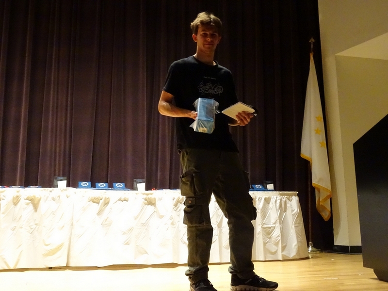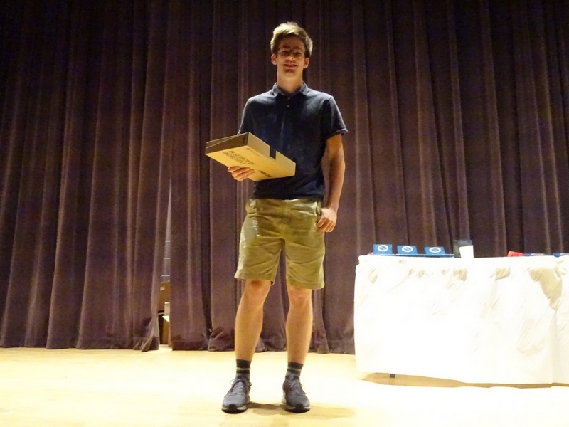 Po odmoru za malico (sendvič, piškot, jabolko, mala vrečka čipsa in plastenka vode) so se tekmovalci napotili v učilnice, kjer so imeli na razpolago eno uro za reševanje teoretičnih nalog. Po zaključku tekmovalnega dela smo počakali na rezultate. Ekipa Gimnazije Vič je v svoji tekmovalni kategoriji osvojila odlično drugo mesto (drugo mesto smo si delili z ekipo neke ameriške šole, ki je imela povsem enak dosežek). Tri ekipe smo imele enako število točk, a po pravilih tekmovanja se v takem primeru kot boljša šteje ekipa, ki je dosegla več točk na teoretičnem delu. Jon in Jakob pa sta prejela tudi posebni nagradi za individualni dosežek na teoretičnem delu. Razlike med ekipami so bile letos izjemno majhne. Najboljša ekipa je bila od naše ekipe boljša zgolj za eno točko. Prvih 10 ekip pa se je razlikovalo zgolj za 5 točk.