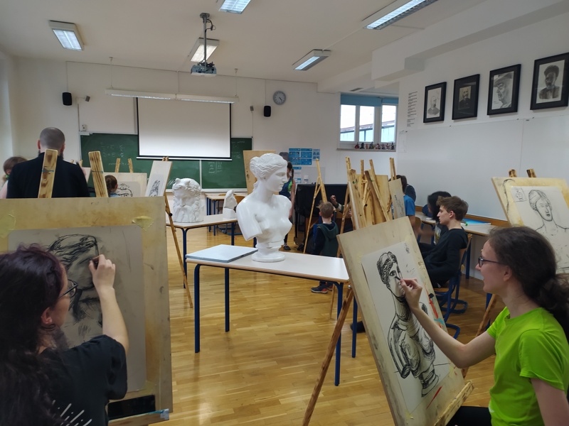 V sklopu umetniških petkov smo zaključili s slikarskim tečajem. Dijaki so tekom srečanj pod mentorstvom akademskega slikarja Adrijana Praznika usvojili upodabljanje figure. Slikali so kipe in tudi žive modele. Svoja dela bodo objavili v literarnem zborniku ter na zaključni razstavi ART tečaja ob koncu šolskega leta.