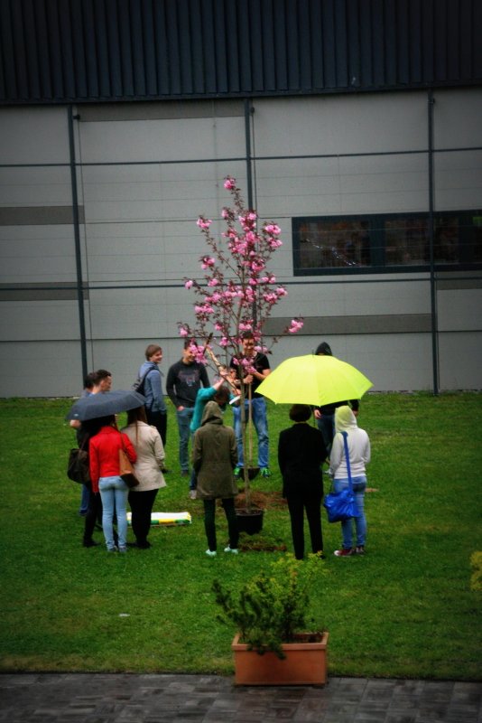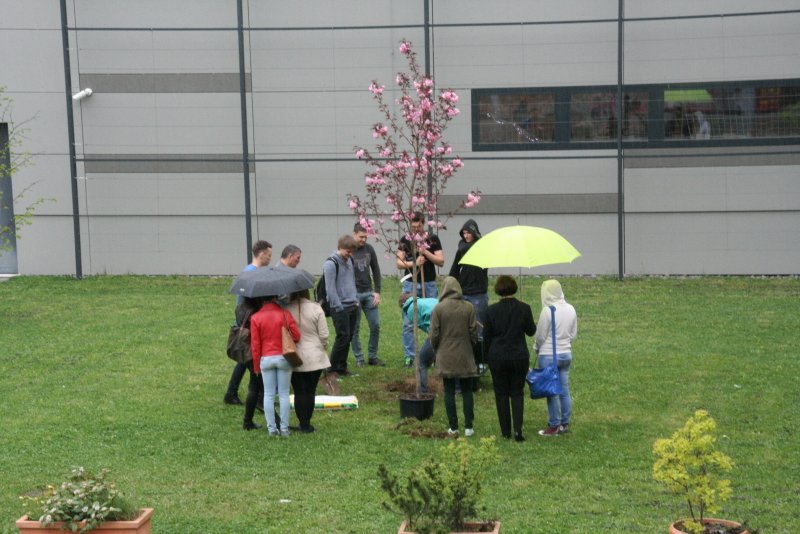 Češnja Letošnji maturanti so v spomin na gimnazijska leta na šolsko zelenico posadili cvetočo češnjo. Še en razlog, da se bodo vračali na šolo tudi v prihodnjih letih.