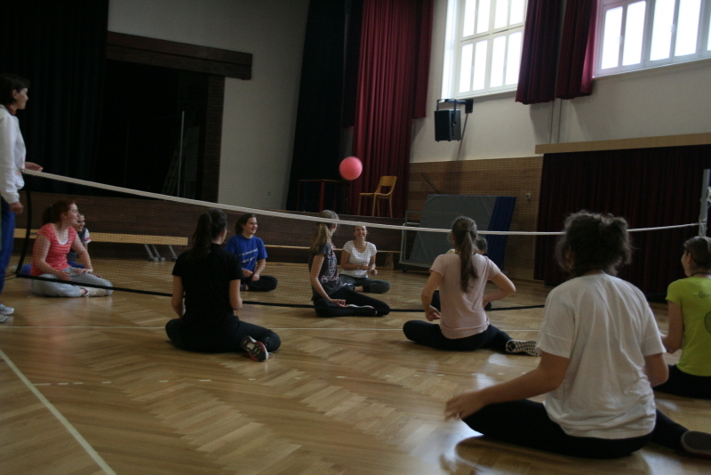 Prejšnjo sredo, četrtek in petek so dijaki v mali telovadnici pri pouku športne vzgoje igrali sedečo odbojko in se poskušali vživeti v vlogo gibalno oviranih oseb. Športno aktivnost je organizirala profesorica Nuša Ražen.