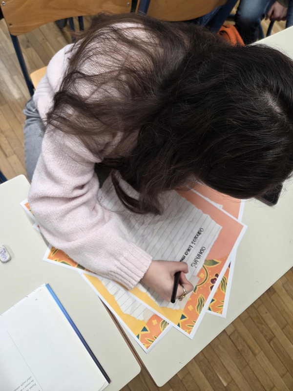 Ob svetovnem dnevu poezije, ki ga praznujemo 21. 3., so dijaki 2.a razreda preostali šoli, dijakom in učiteljem podarili pesmi slovenskih avtorjev, ki so jih napisali na roko. Med glavnim odmorom je na šolskem radiu potekalo branje poezije v jezikih, ki se jih učimo na Gimnaziji Vič.