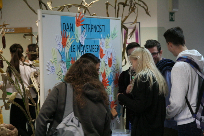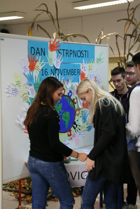 Na Gimnaziji Vič smo tudi letos obeležili mednarodni dan strpnosti. Dijaki in profesorji smo bili že ob vstopu v šolsko zgradbo opozorjeni na dejstvo, da se za strpnost ODLOČIMO SAMI! Strpnost je namreč zavestna odločitev v ravnanju, razmišljanju in dojemanju sveta okrog nas. Sodobni čas nas je postavil v situacijo, ko vsak dan sodelujemo z nekom, ki je drugačen od nas. Svet je postal PISAN, mi pa se odločamo ali nam je takšen svet všeč ali ne.