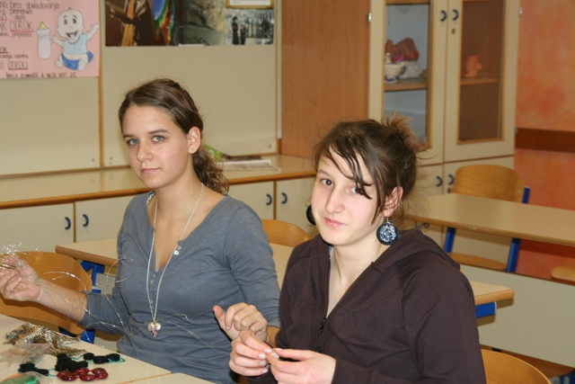 V torek, 26. 1. 2010, smo izvedli delavnico oblikovanja nakita iz perlic, žice in filca. Glavni motiv je bila spirala oz. polž. Nastali so lepi uhani, zapestnice, obeski in ogrlice.