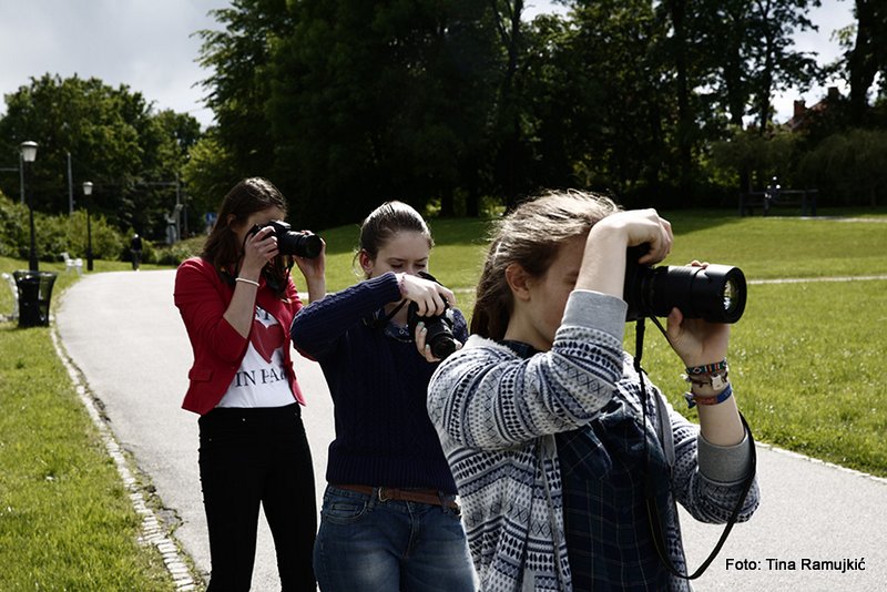 S puncami smo se za zadnji dan fotografskega tečaja odpravile v sončni Tivoli raziskovati fotogenične motive, vaditi osvetlitev s časom zaklopa, kompozicijo in zlati rez ter globinsko ostrino. Tanjo in Doris sta navdušila črni višavski terier in mešanček, Urša pa je vadila globinsko ostrino. Kolesarji in motorist so nam bili hvaležen moti, ko smo nadzorovale gibanje s pomočjo časa zaklopa.