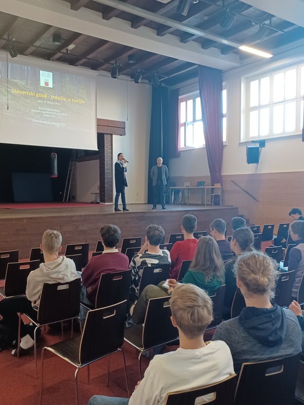 Za dijake 1.a, 1.c, 1.f (Sonja Artač), 2.a in 2.e (Maja Gerden) sta bili v okviru medrazrednega povezovanja na temo globalnih podnebnih sprememb, organizirani predavanji: Ambicije okoljskih politik, dr. Tomaž Gerden in Slovenski gozd - trdoživ, a ranljiv, prof.dr. Robert Brus.