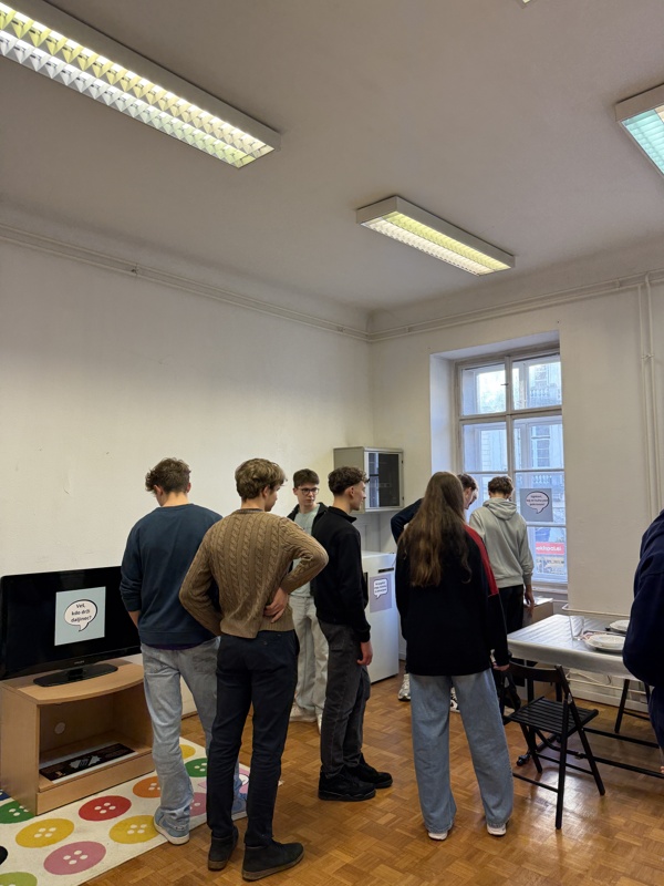 V sredo, 10. 12. 2025, smo dijaki medijske pismenosti v okviru Erasmus+ obiskali začasno interaktivno razstavo Hiša laži.