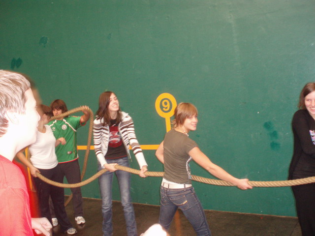 Prišel je zopet ponedeljek in zjutraj smo v šoli najprej zaključevali predstavitve kultur, kasneje pa je sledila rekreacija. Poizkusili smo se v tradicionalnih baskovskih igrah in dekleta se moramo pohvaliti z zmago v vlečenju vrvi, kjer smo premagale Čehinje, ki so tekmo vzele precej bolj resno kot me. Proti večeru smo skupini španskih staršev predstavili naše projekte o kulturi, na koncu pa smo svojim parom še predali značke s slovenskimi znaki, ki so jih vsi ponosno nosili.