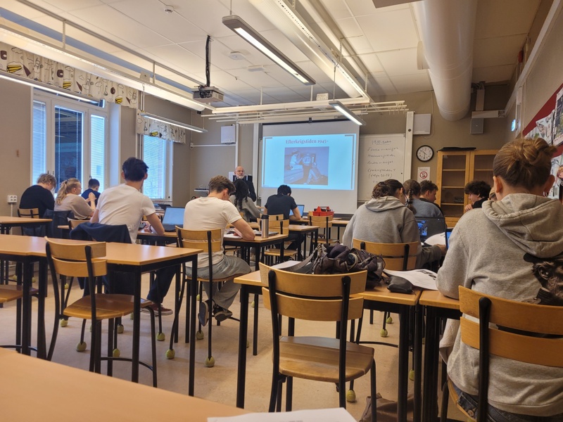 Sledil je obisk pouka, kjer smo imeli priložnost sodelovati pri različnih predmetih. Nekateri so obiskali uro švedščine, drugi kemijo, družboslovje, matematiko, zgodovino ali angleščino. Vzdušje pri pouku je bilo sproščeno, profesorji pa so spodbujali sodelovanje in razmišljanje.