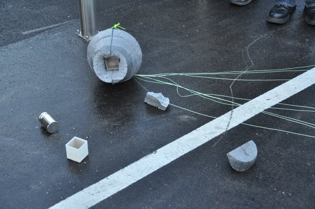 - v prvem poskusu so spustili sondo, ki so jo obremenili z utežjo,