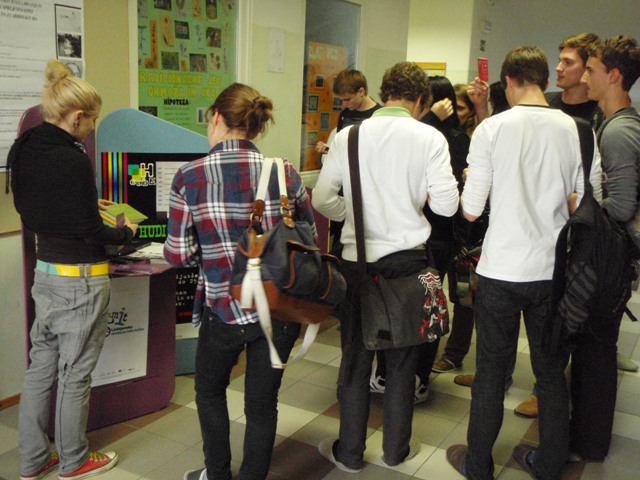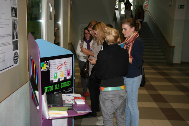 V sredo, 26. oktobra, je bila tudi na naši gimnaziji postavljena info točka. Z odzivom dijakov in dijakinj smo bili res zelo zadovoljni. Točko si je ogledalo zelo veliko mladih. Verjamemo, da se je za vsakega našlo kaj zanimivega in uporabnega. Nekaj foto utrinkov si poglejte spodaj, še več pa jih je na Facebook strani: http://www.facebook.com/LMIT.org