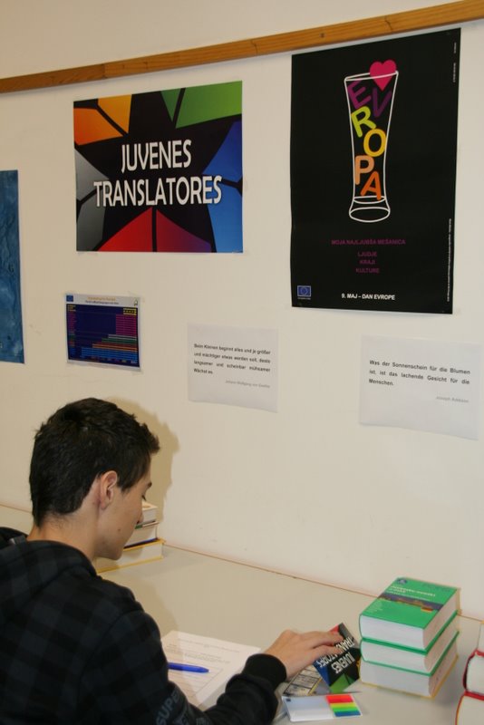 Evropska komisija je že petič organizirala to tekmovanje. Naša šola pa je že tretjič sodelovala. Učitelji tujih jezikov se zavedamo pomembnosti takih prilik in z veseljem spodbujamo naše dijake. Letos so dobili priznanja za odlične prevode Petra Oblak in Nadja Mičič, ki sta prevajali iz španščine v slovenščino ter Jure Kert, ki je prevajal iz slovenščine v angleščino.