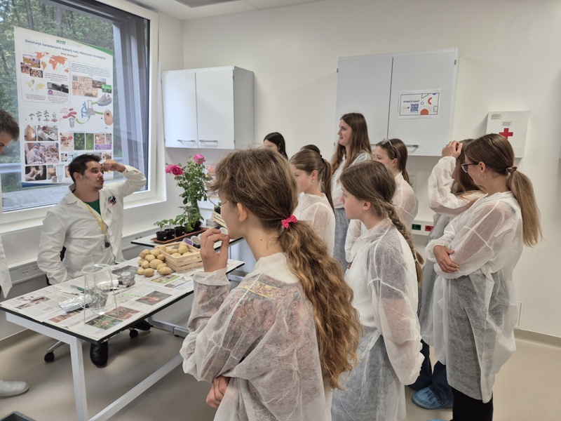 Najprej smo se srečali z zanimivim svetom žuželk ter opazovali ples in oglašanje čričkov, s čimer smo spoznali, kako te živali komunicirajo med seboj. Nadalje smo pod elektronskim mikroskopom opazovali viruse in prisluhnili razlagi o njihovem pomenu pri raziskavah bolezni rastlin in živali. Raziskovalci so nam predstavili tudi PCR metodo, s katero lahko pomnožijo in zaznajo odseke DNA, ter razložili, kako se takšne tehnike uporabljajo pri diagnosticiranju različnih organizmov. Izvedeli smo, da na inštitutu redno in zelo natančno testirajo krompir ter druge poljščine, ki v Slovenijo prispejo prek Luke Koper, in preverjajo njihovo morebitno okuženost s patogenimi organizmi. V nadaljevanju smo spoznali delo na področju imunologije rakavih celic, kjer raziskujejo procese, ki lahko prispevajo k razvoju novih oblik zdravljenja raka. Videli smo tudi cianobakterije ter se dotaknili aktualnega vprašanja njihove sposobnosti sproščanja toksinov, ki lahko povzročijo zastrupitve vodnih teles. Na koncu pa smo zaključili z aktualno temo mikroplastike, si ogledali vzorce pod mikroskopom ter razpravljali o vplivu teh delcev na okolje in človeka.