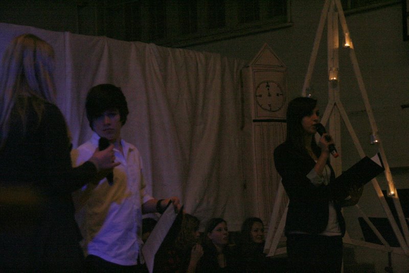 Člani šolskega pevskega zbora, orkestra in ŠILE so skupaj z zborovodkinjo dr. Marijo Mihevc pripravili za dijake, starše in profesorje imenitno božično novoletno prireditev. Za pravljično kuliso in zakritje gradbišča na odru je poskrbela profesorica Tadeja Rudolf. Letošnja tema prireditve z lepimi željami so bili božično-novoletni običaji dežel, katerih jezike se učijo naši dijaki. Prepevali so v angleščini, nemščini, španščini, italijanščini in francoščini. Za bolj plastični prikaz običajev so poskrbeli ŠILArji, vse skupaj pa sta simpatično povezovala in v predstavo vključevala tudi gledalce dijaka prvega letnika.