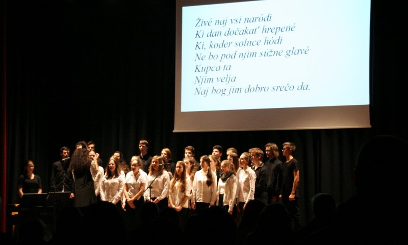 Letošnjo prireditev, na kateri smo počastili dan samostojnosti in enotnosti, nam je pripravil naš pevski zbor pod vodstvom profesorice dr. Marije Mihevc. Izvedli so imenitni koncert, s katerim so nas s pesmijo popeljali po celem svetu. Uživali smo ob njihovem zbornem petju in si na koncu, ko so odpeli Jingle Bells, zaželeli lepe praznike in srečno novo leto ter si priploskali dodatno pesem.