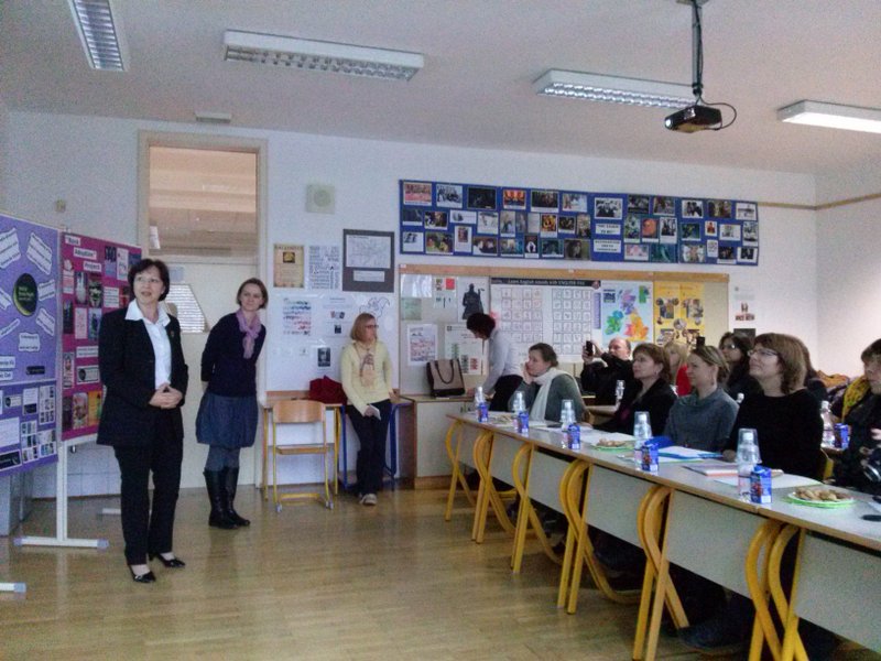 20. novembra 2013, smo na šoli gostili skupino litvanskih učiteljev. Angleška promocijska skupina je pripravila kratko predstavitev Slovenije in Ljubljane ter našega šolskega sistema, nato pa smo litvanske goste popeljali skozi številne šolske in obšolske dejavnosti, ki delajo našo šolo prepoznavno. Po koncu predstavitve se je srečanje nadaljevalo z živahnim razgovorom, kjer smo gostom odgovorili na številna vprašanja in jim dodatno pojasnili ozadje nekaterih projektov.