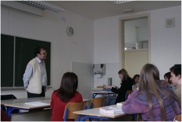V ponedeljek, 3. 4. 2006, nas je, 4. e razred, pri pouku slovenščine obiskal dr. cekvene zgodovine, univ. dipl. teolog, docent na Teološki fakulteti Matjaž Ambrožič.