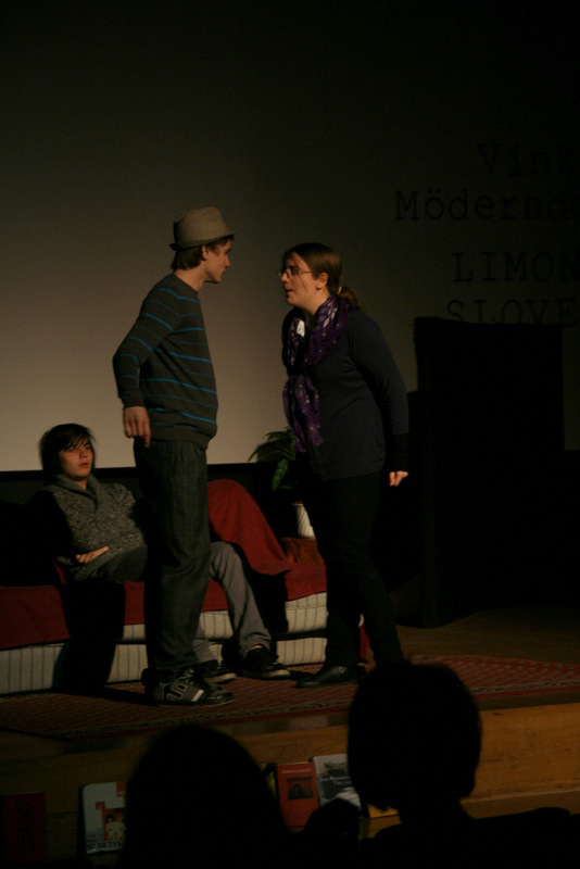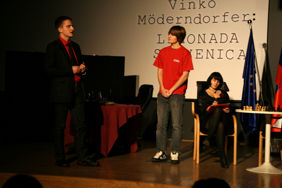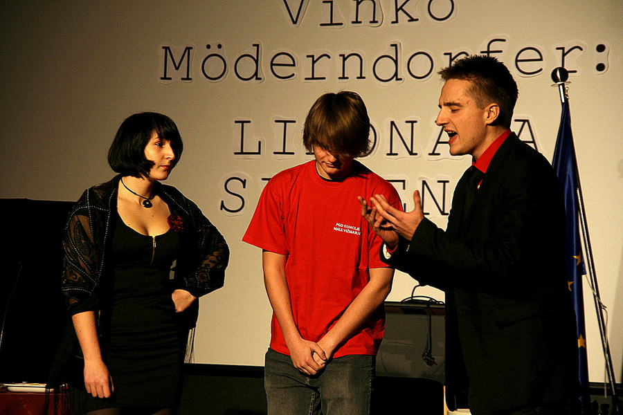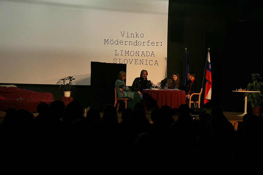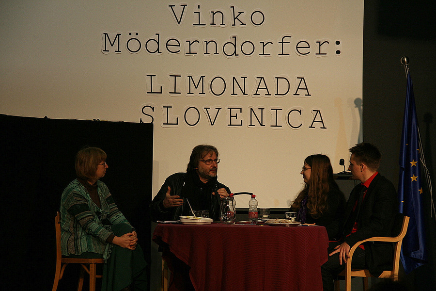 Dne 20.12.2011 je našo šolo obiskal Vinko Möderndorfer, avtor komedije Limonada Slovenica, ki je letos del obveznega maturitetnega čtiva. Pisatelju smo najprej odigrali nekaj prizorov iz njegove komedije, ki smo jih priredili na svoj način. Sledil je pogovor, ki nam je razkril različne zanimive stvari o procesu nastajanja gledaliških del, ter uporabna dejstva o komediji Limonada Slovenica, ki nam bodo prišla prav pri pisanju maturitetnega eseja. Komedija Limonada Slovenica je najboljša izmed dram v letošnjem maturitetnem čtivu, saj je napisana tako, da v njej vsakdo najde nekaj zase in kar ustreza njegovemu smislu za humor. Naj bo to Helenino neučinkovito zapeljevanje, zakonski spori, politične zdrahe ali Alanovi prisrčni in slovnično nepravilni monologi, vsakdo ima svoj najljubši prizor.