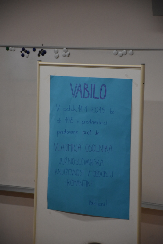 V petek, 11. 1. 2019, je bilo v naši predavalnici predavanje prof. dr. Vladimirja Osolnika o evropski romantiki ter južnoslovanski književnosti v tem času. Poseben poudarek je bil na delu Petra Petrovića Njegoša in povezavah s slovensko romantiko.