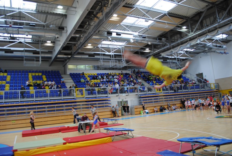 V četrtek, 29.3.2018 je v športni dvorani v Brežicah potekalo finalno državno prvenstvo srednjih šol v skokih iz male prožne ponjave. Tekmovanje je bilo ekipno (3+1) in posamično.