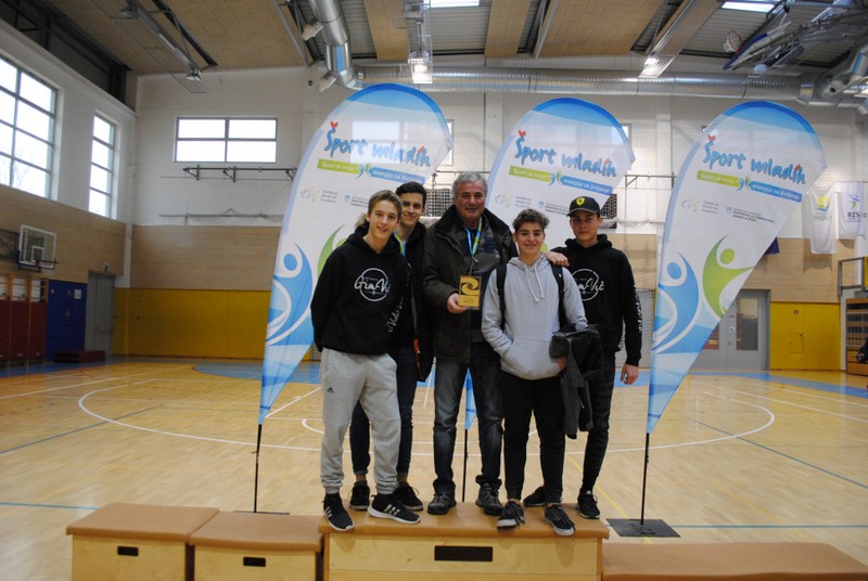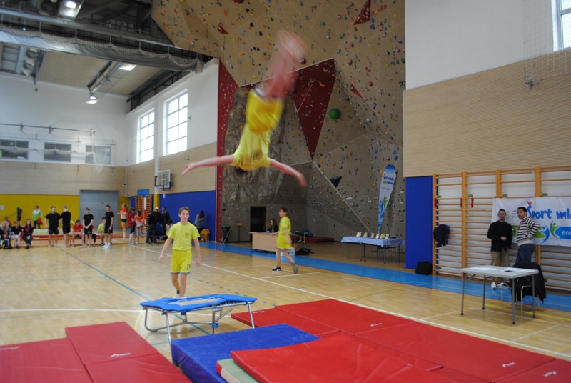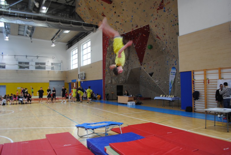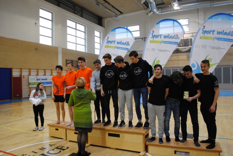 Našo gimnazijo so zastopali Kris Flajs 2a, Dan Troha 2e, Gregor Turk 1d in Jakob Udovič 4a. Tekmovalni program je sestavljalo 1 obvezni in 3 poljubni skoki, ki so bili opisani v pravilniku tekmovanja. Naši fantje, ki so odlični »skakalci«, so si že v šoli na treningih izbrali skoke z najvišjimi koeficienti težavnosti. Na tekmi so odlično opravili nalogo in zmagali pred 11 drugimi SŠ. Med več kot 50 posamezniki, pa je 2 mesto dosegel Gregor Turk 1d.