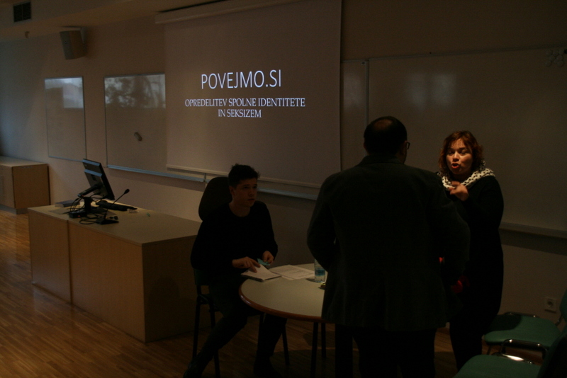9.1. 2018 smo v okviru projekta POVEJMO.SI na šoli organizirali pogovor z gosti dr. Romanom Kuharjem, dr. Živo Humer in Katjo Zgoznik o spolu, spolni identiteti in seksizmu. Spregovorili smo o razliki med spolno identiteto in spolno usmerjenostjo, o binarni opredelitvi spola v zahodnem svetu, razliki med vrednotenjem dela moških in žensk (ter izpostavili trenutno dogajanje na Islandiji) ter o pogojenosti zaposlovanja in spola. Del pogovora je bil namenjen razmišljanju o pomoči, ki jo lahko nudimo osebi, ki doživlja težave z identificiranjem samega sebe, in njenim bližnjim.