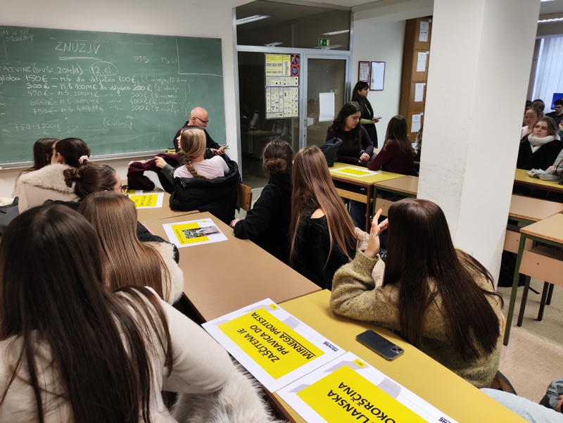 V sredo 21.1. 2026 so se dijaki 3.d in 3. f oddelka udeležili pravne sprehajalnice, ki jo je organizirala Pravna mreža za varstvo demokracije. Obiskali smo policijsko postajo v centru mesta, kjer so nam policisti in sodelavci Pravne mreže predstavili ustavno zagotovljeno pravico do mirnega zbiranja in do javnih zborovanj. Sledil je obisk Ustavnega sodišča, kjer smo z ustavno sodnico dr. Nežo Kogovšek Šalamon razpravljali o vlogi in pomenu ustave in delu Ustavnega sodišča, na koncu pa smo obiskali še prostore medijske hiše N1. Novinarka in urednica Suzana Lovec je dijakom razložila kako deluje njihova medijska hiše ter izpostavila pomen neodvisnega novinarstva za demokracijo.