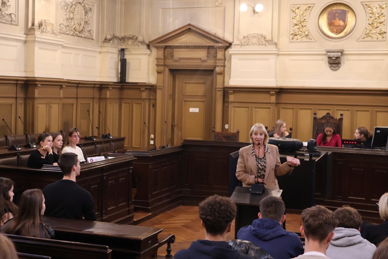 V petek, 7. 11. 2025, so dijaki 3. d in 3. f v okviru predmeta aktivno državljanstvo obiskali Vrhovno sodišče, kjer so izvedli simulacijo glavne obravnave kazenskega postopka. Pri tem jim je pomagala vrhovna sodnica Maja Baškovič, ki je po končani simulaciji dijakom odgovarjala na vprašanja, povezana z vodenjem sodnih obravnav ter vlogo in pomenom sodne veje oblasti.