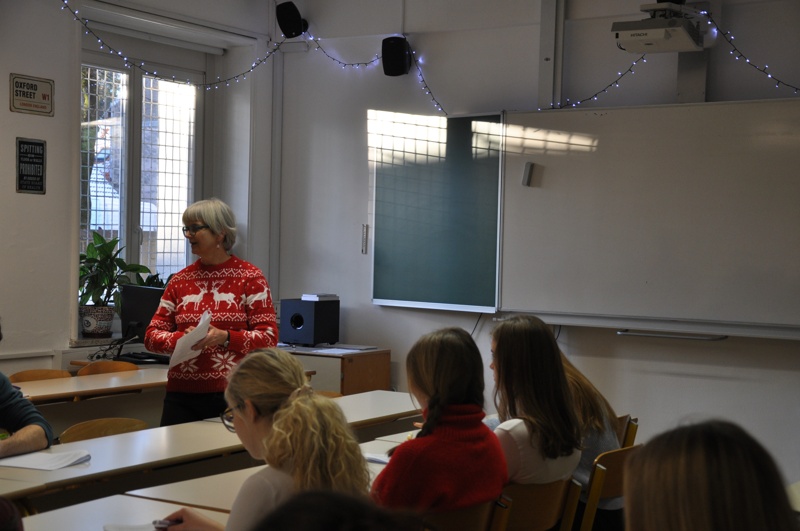V torek, 24. 12. 2024, je 3. b in 3. c razreda obiskala dr. Cvetka Sokolov z Oddelka za anglistiko in amerikanistiko Filozofske fakultete Univerze v Ljubljani. Dijakinjam in dijakom je v okviru projekta Noč raziskovalcev predstavila svoje delo, nato pa so se pogovarjali o kratki zgodbi "Do they know it's Christmas?", irsko-kanadske pisateljice Emme Donoghue.