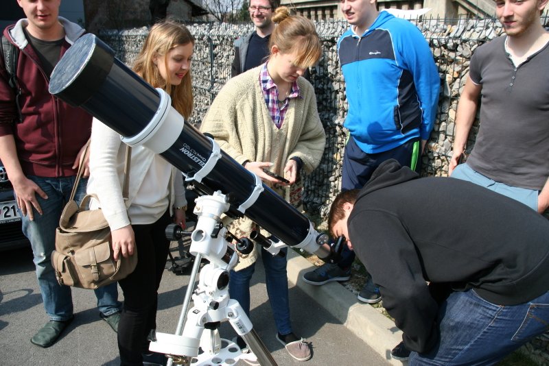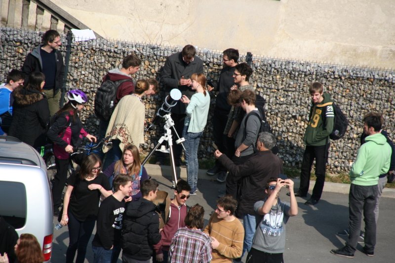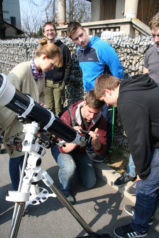 20. marca 2015 smo tudi na dvorišču Gimnazije Vič, pod mentorstvom učiteljev fizike, organizirali opazovanje delnega sončevega mrka. Dijaki so z veseljem sodelovali pri pripravi dogodka in z zanimanjem opazovali prehod Lune preko Sonca.