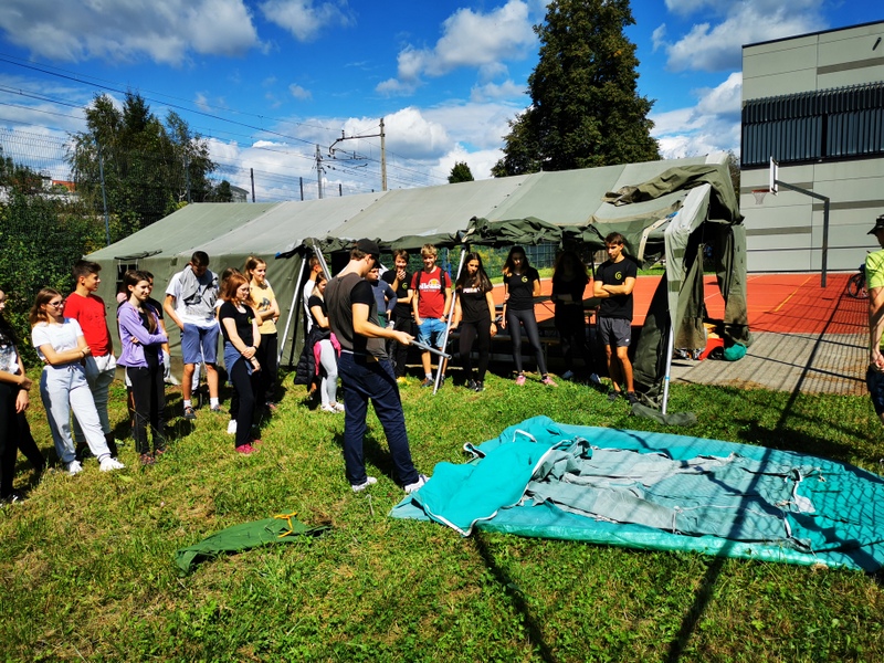 Letošnji originalni načrti so padli v vodo, smo pa udejanjili še bolj posebno idejo – taborjenje za šolo. Skozi delo – postavljanje šotorov, družabne in športne igre so se dijaki posameznega oddelka spoznavali in gradili svojo identitetno na Gimnaziji Vič. Tako, da so vsi sprejeti kot člani nove skupnosti: svojega oddelka in širše, člani dijaške skupnosti Gimnazije Vič.