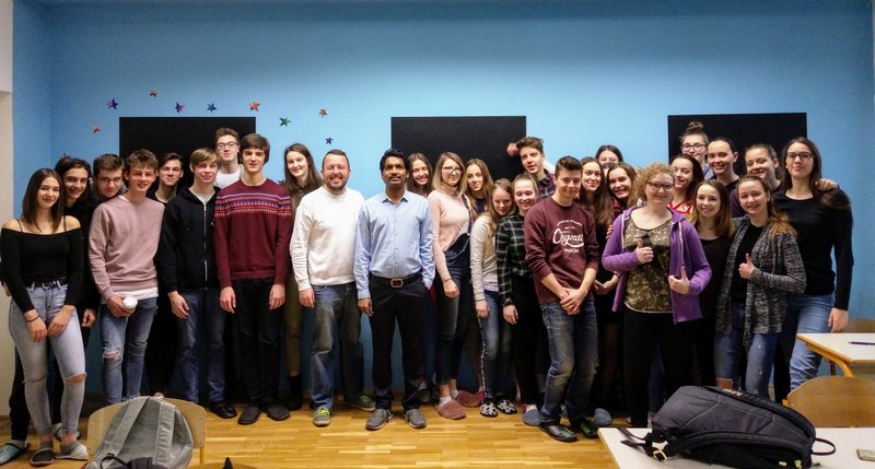 V četrtek, 29. 3. 2018, je Gimnazijo Vič obiskal Pawan Kumar Singh, podiplomski študent agronomije iz Indije. Obisk je potekal v okviru projekta Svet v učilnici, ki ga vodi CMEPIUS. G. Singh je sodeloval pri dveh urah angleščine v 2. a in 2. e razredu. Dijakom je predstavil svojo državo. Poudaril je raznolikost Indije, govoril pa je tudi o indijski zgodovini in književnosti, jogi, indijskih običajih ter o znamenitih osebnosti in krajih svoje države.