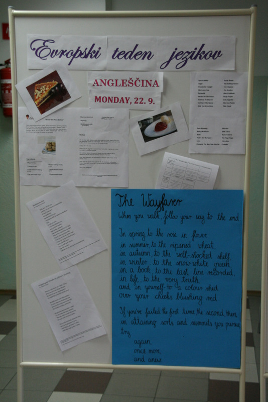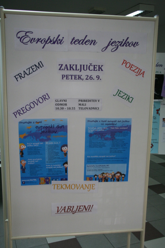 V letošnjem šolskem letu smo se na naši gimnaziji odločili, da bomo Evropski dan jezikov (26. 09.) obeležili na poseben način, in sicer s pripravo Evropskega »TEDNA« jezikov. Dejavnosti so se začele v petek, 19. 09. 2014, ko smo posebno pozornost namenili slovenščini kot našemu maternemu jeziku.