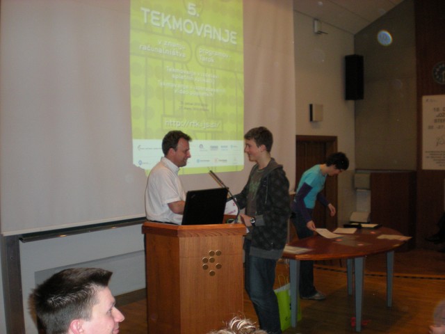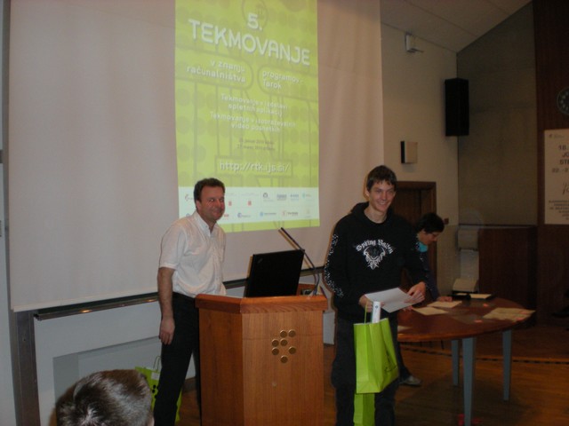 Medtem ko je komisija zavzeto popravljala naloge, smo lahko udeleženci poslušali zanimiva predavanja. Sledila je razglasitev rezultatov in podelitev nagrad za najboljše, ki so bile kar bogate. Tudi mi smo bili uspešni, saj smo osvojili kar 5 nagrad: