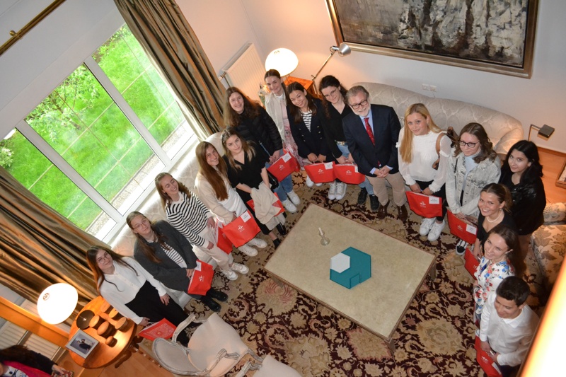 Zlata priznanja so prejeli dijaki v rezidenci španskega veleposlanika. Vabljeni so bili tudi mentorji in ravnatelji. Gospod veleposlanik, Juan de Aristegui Laborde, po rodu Bask, iz dežele, kamor se odpravljamo na izmenjavo, je naši ravnateljici, mag. Alenki Krapež, obljubil obisk na šoli.