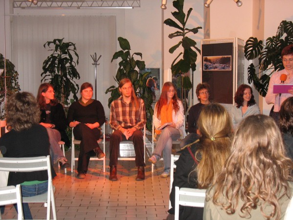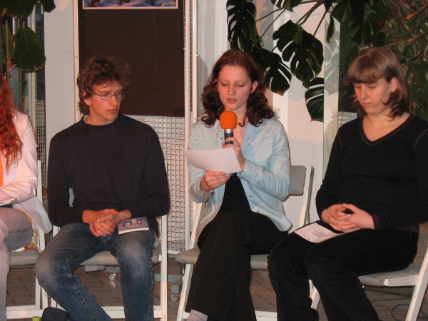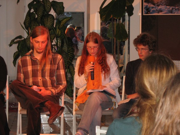 V prijetnem okolju knjižnične dvoranice so nam brali svoja in besedila svojih sošolcev: Mojce Leskovec, Barbare Tvrdi, Nike Remc, Simona Pirša, Urške Bradeško, Barbare Bizjak, Tima Ušiča, Gašperja Jakovca, Barbare Čepon in Roka Dovjaka.