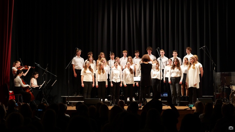 V torek, 21. maja, so nam šolski pevski zbor in naši instrumentalisti pod vodstvom zborovodkinje dr. Marije Mihevc pripravili imeniten koncert. Zapeli so pesmi iz risanih filmov, krona koncerta pa je bila krstna izvedba skladbe Morje, za katero je glasbo in besedilo napisala naša dijakinja Manca Kermelj Kuzman.