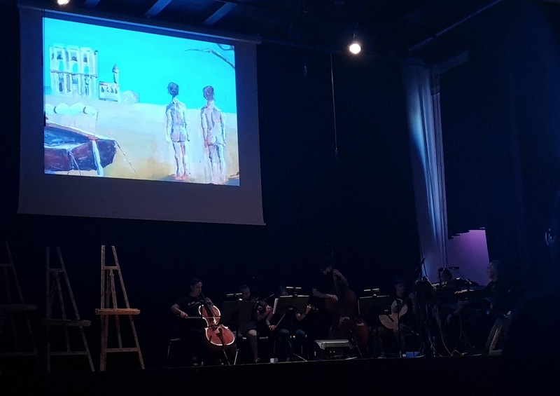 One of them, Ana Stergar, read one of the poems from her own collection of poetry. Among the performers was also Lado Jakša, who prepared a presentation of all the exhibited paintings which he accompanied with his music.
