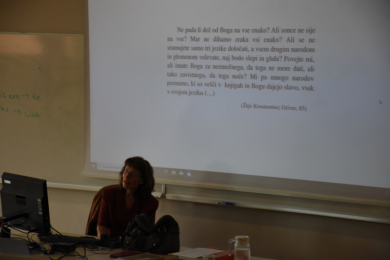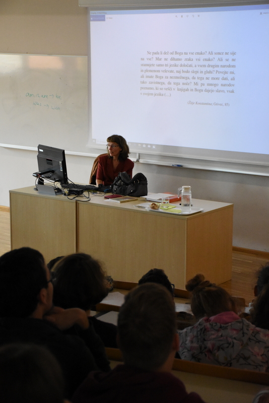On Monday the 23rd of September, the students of Gimnazija Vič had a chance to attend a lecture on the History of Slavic languages and the Slavic alphabet, given by Dr Vanda Babič. Dr Babič is a professor at the Faculty of Arts of the University of Ljubljana and this lecture was a part of her regular classes given on Slavic languages.