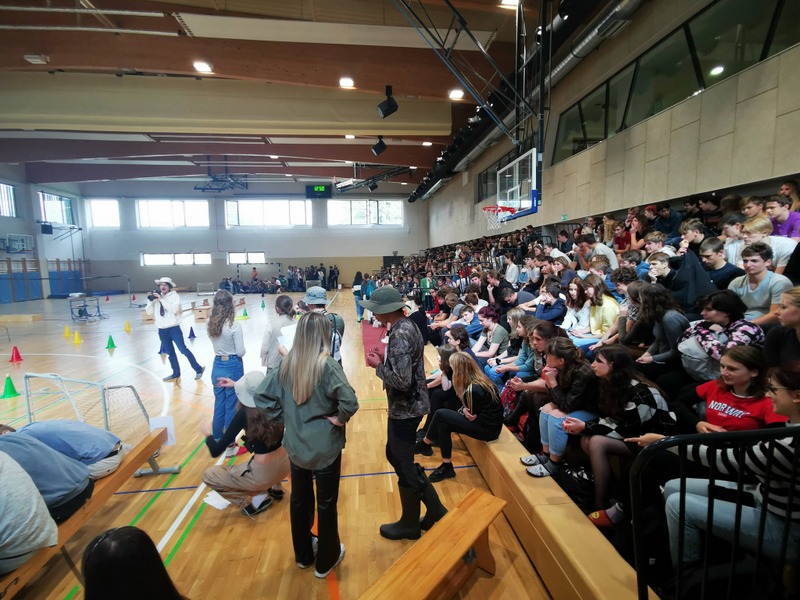 After a few weeks of being part of the school community, one of the events that acts to officially welcome the new generation to Gimnazija Vič takes place. This “Fazanski Krst” (literally “Pheasants’ Baptism”) is a session of games, competitions, and entertainment organised by the older students of our school. The new classes have to compete against each other in a series of challenges designed to show a range of skills and abilities with the winning class being given a special prize.