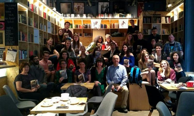 After a delicious lunch during which we got to sample some local cuisine, the full group met with other students of the host school to attend this year’s closing ceremony. Instead of having it within the school as has been usual over the past few years, the decision was made to reserve a bookshop-café in Budapest. This fantastic idea allowed us to explore a new location that provided a perfect spot to enjoy refreshments and hear some of the work performed in a space especially designed for presentations and performances.