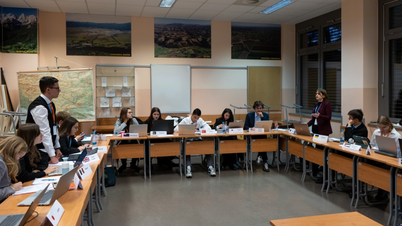 The general theme of this UN simulation was AI and its effects and future in the fields of human rights (HRC), space (dis)armament (DISEC) and cybersecurity (SC).