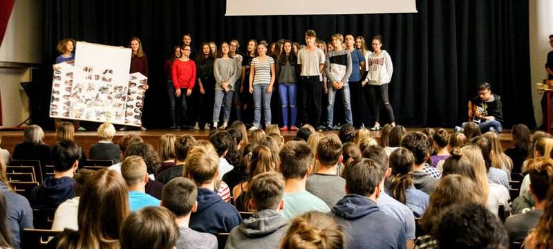 The final part of this welcoming project took place on Friday 19th October when all the first-year students got together in the main hall to give presentations and performances based on their experiences when they were away at the camp in September. With a chance to talk about what they learned about each other, about what life will be like at our school, and to discuss their new friendships, it proved a fitting conclusion to this set of activities.