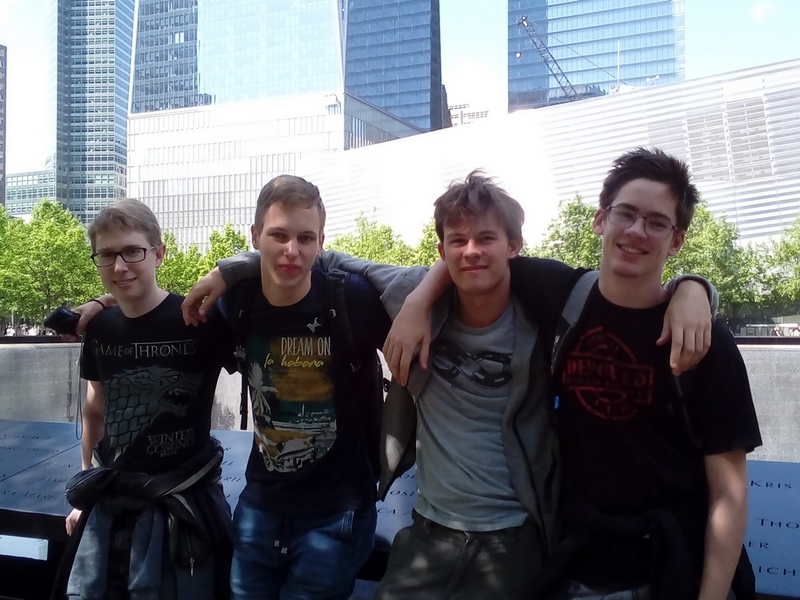 Po obilnem zajtrku v hotelu smo se odpeljali proti New Yorku. Žal nas je navigacijska naprava vodila skozi prometno gnečo centra Bostona, kar nam je za dobro uro podaljšalo pričakovani čas potovanja. Ko smo prišli do našega hotela na robu Bronxa, smo odložili prtljago v dodeljenih sobah in se takoj odpravili do bližnje postaje podzemne železnice, od koder smo se zapeljali do skrajno južnega dela Manhattna (Battery Park). Sprehodili smo se mimo stolpnic centra kapitalizma na Wall Streetu, si ogledali poslopje borze (New York Stock Exchange) in Federal Hall ter nato zavili na kosilo v McDonalds. Po kosilu smo šli v Spominski park 9/11, kjer smo si ogledali oba »bazena«, ki sta postavljena namesto v terorističnem napadu porušenih stolpnic svetovnega trgovinskega centra. Pot nas je nato vodila mimo cerkve (kapele) sv. Pavla iz leta 1766 do obale, od koder smo si ogledali znameniti Brooklynski most. Sprehodili smo se še skozi kitajsko četrt in nato skozi Madison Square Park do včasih najvišje stavbe na svetu – Empire State Building. Svojo radovednost smo potešili še s postankom v ogromni knjigarni, nakar smo se naužili še blišča in gneče na Times Square. V senci nebotičnikov smo se nato ustavili pri Rockefeller centru in naredili še nekaj korakov do Trumpovega nebotičnika (Trump tower) na peti aveniji. Dolg sprehod po Manhattnu je potrošil kar nekaj kalorij, zato smo v večernih urah potešili lakoto v mehiški restavraciji Chipotle. Po tej preizkušnji za želodce smo nadaljevali pot do roba Central Parka in nato do bližnje postaje podzemne železnice na aveniji Madison, kjer smo se vkrcali na metro, ki nas je odpeljal v bližino našega hotela. Nekaj 100 metrov hoje od postaje podzemne železnice do hotela v Bronxu sicer vzbuja nelagodje, a smo se samozavestno zavedali, da si skupine petih Vičanov tudi v Bronxu ne bo nihče upal nadlegovati (pa tudi receptorka v hotelu nam je prej povedala, da je okoliš varen).