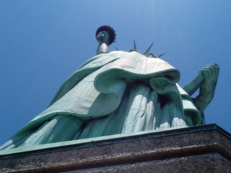 Po dobrem zajtrku v hotelu smo ponovili pot do postaje podzemne železnice in nato na skrajni južni del Manhattna. Tam smo se srečali z našo vodičko, ki nam je izročila karte za ladjico in nam dala navodila za ogled Liberty Island in Ellis Island. Karte so nam sicer omogočile vstop v prednostno vrsto (priority lane), a se nam ni zdelo, da se naša vrsta pomika kaj bistveno hitreje od cenejših kart za »običajne« potnike. Pred vstopom na ladjico smo šli še skozi varnostno kontrolo, ki je bila skoraj tako stroga kakor na letališču. Ladjica nas je hitro popeljala do Liberty Island, kjer smo se izkrcali in uživali v pogledu na Kip svobode. Nekoliko dražje karte so nam omogočile tudi vzpon po stopnicah na vrh podstavka, kar nam je omogočilo lep razgled na Manhattan. Zavili smo še v muzej znotraj podstavka, kjer smo si med drugim ogledali razstavo o gradnji Kipa svobode.