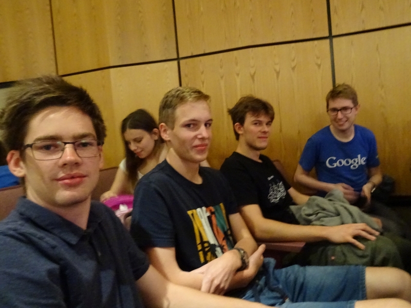 Po odmoru za malico (sendvič, piškot, jabolko, mala vrečka čipsa in plastenka vode) so se tekmovalci napotili v učilnice, kjer so imeli na razpolago eno uro za reševanje teoretičnih nalog. Po zaključku tekmovalnega dela smo počakali na rezultate. Ekipa Gimnazije Vič je v svoji tekmovalni kategoriji osvojila odlično drugo mesto (drugo mesto smo si delili z ekipo neke ameriške šole, ki je imela povsem enak dosežek). Tri ekipe smo imele enako število točk, a po pravilih tekmovanja se v takem primeru kot boljša šteje ekipa, ki je dosegla več točk na teoretičnem delu. Jon in Jakob pa sta prejela tudi posebni nagradi za individualni dosežek na teoretičnem delu. Razlike med ekipami so bile letos izjemno majhne. Najboljša ekipa je bila od naše ekipe boljša zgolj za eno točko. Prvih 10 ekip pa se je razlikovalo zgolj za 5 točk.