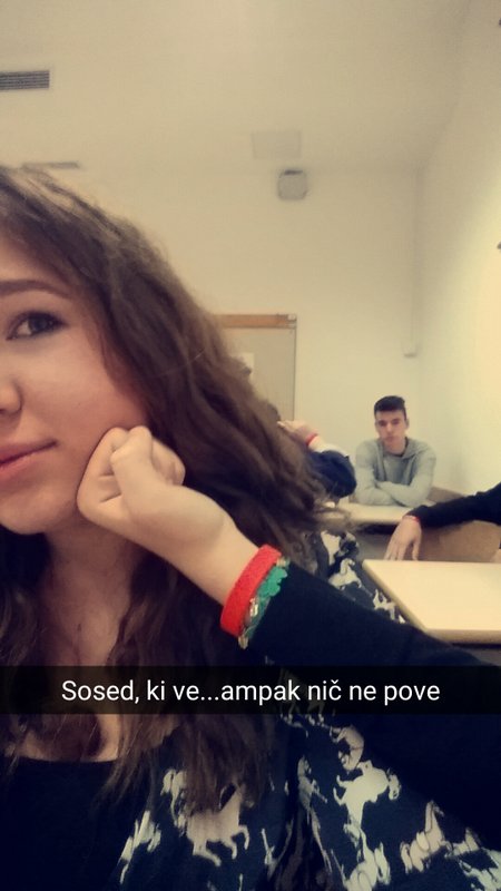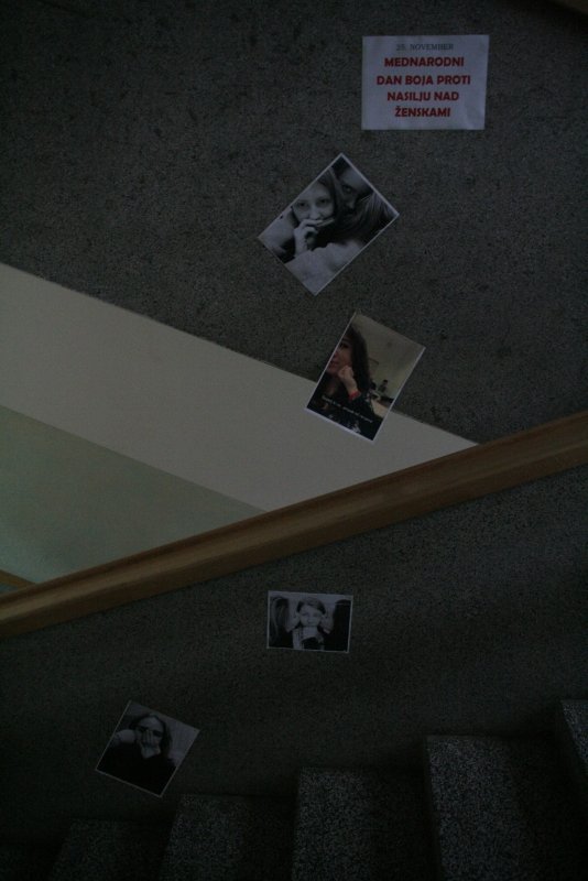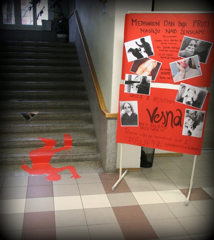 Na šoli smo ta dan obeležili z vključitvijo v projekt Vesna, ki ga od leta 2013 izvaja Ministrstvo za delo, družino, socialne zadeve in enake možnosti. Dijake smo povabili, da posnamejo selfie na temo nasilja nad ženskami in ga pošljejo na objavljeni spletni naslov (www.facebook.com/enakostspolov). Nosilci projekta bodo iz pomanjšanih fotografij oblikovali obraz ženske s sporočilom, da skupaj lahko preprečimo nasilje nad ženskami. Še vedno lahko posnamete selfie in ga do 1.12.2015 pošljete na ustrezen naslov.