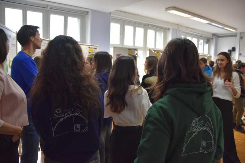 Vsaka izmed štirinajstih skupin je imela svojo stojnico. Predstavniki skupin smo pripravili panoje s plakati, s katerimi smo bodočim dijakom Gimnazije Vič in njihovim staršem na kratko predstavili s čim se pri projektu ukvarjamo, kaj so naše naloge ter koliko smo napredovali od začetka šolskega leta. Postavili smo tudi kolo sreče, s katerim so si lahko obiskovalci pomagali pri izbiri skupine, če niso bili prepričani, katera jih zanima, pri tem pa so lahko zadeli tudi sladke nagrade.
