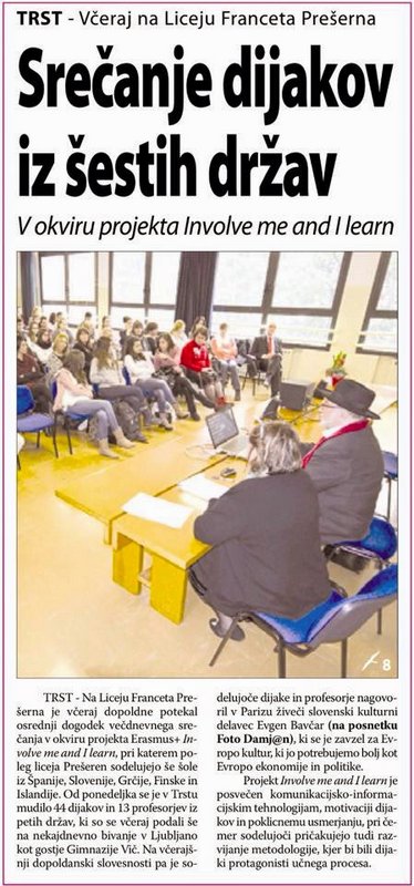 Ena izmed aktivnosti mednarodnega projekta Erasmus+ Involve me and I learn, pri katerem smo sodelovali dijaki 1. d oddelka, je bila tudi dijaška izmenjava. Več o projektu Erasmus+ Involve me and I learn»